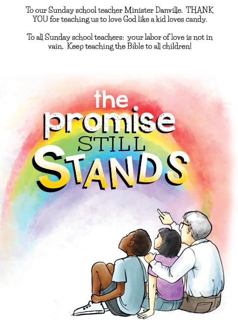 The Promise Still Stands is an adventurous, educational story about the true meaning of the rainbow. Grandpa Paakow takes Bernice and Kevin on a historical adventure to learn more about the rainbow.